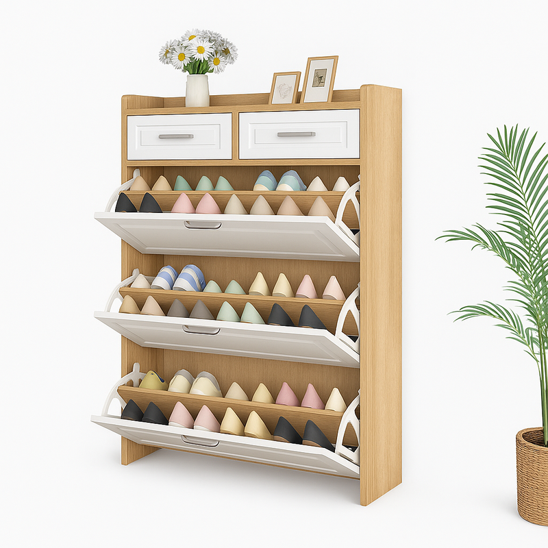 Armário de Sapatos com 3 Portas e 2 Gavetas